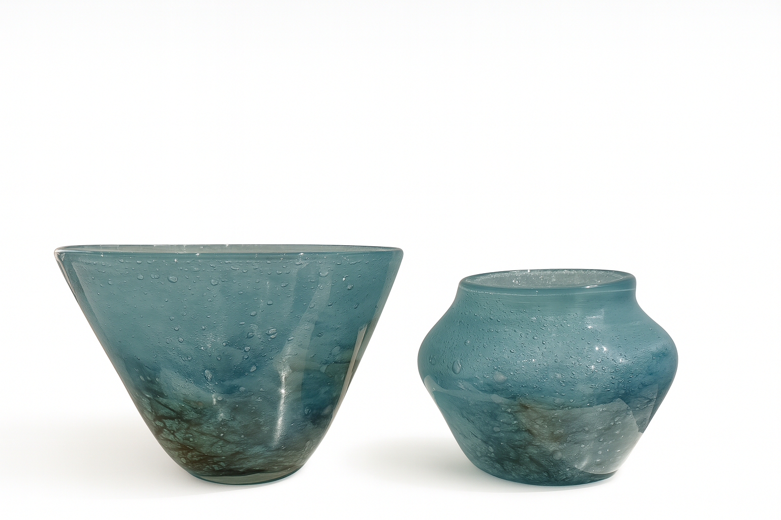 Echoing the fluid beauty of ocean currents, the Aqua Drift Glass Vases are true sculptural treasures. Hand-blown by artisans, each piece features a mesmerizing fusion of aquatic hues, delicate air bubbles, and marbled undertones that evoke the serene depths of the sea.