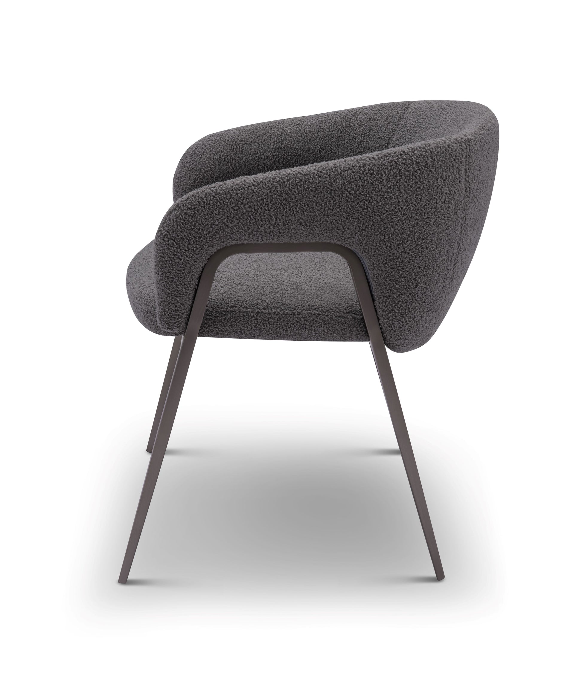Minimalist sophistication meets sculptural form in the Arezzo Dining Chair—a statement piece designed to enhance refined dining interiors. Resting on a sleek, brushed bronze stainless steel base, its gracefully contoured frame offers both visual lightness and enduring stability.