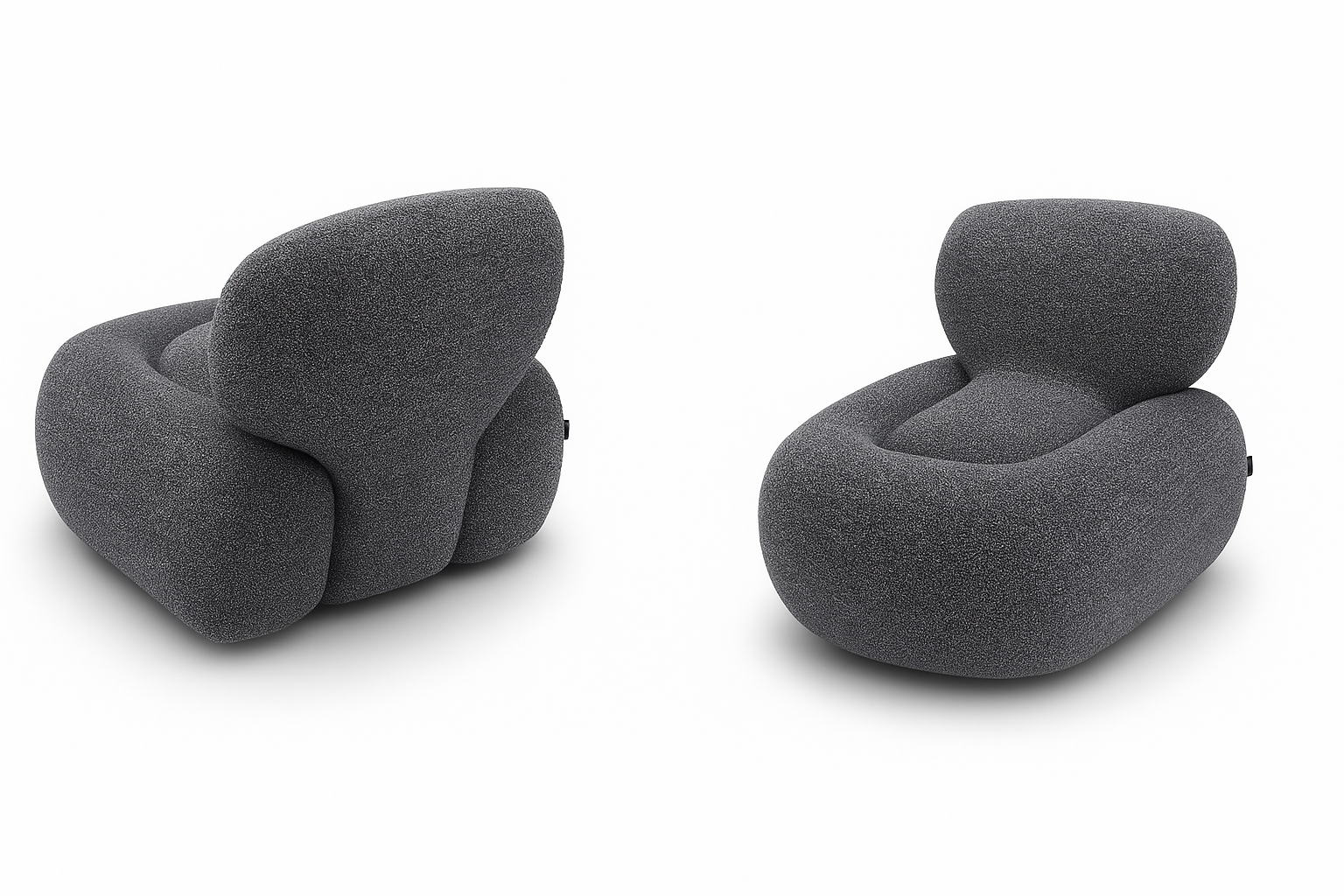 Sculptural yet supremely inviting, the Bolzano Occasional Chair is a contemporary masterpiece designed for refined lounging. Wrapped in a richly textured grey fabric, its fluid silhouette and generous curves offer both visual intrigue and unparalleled comfort.