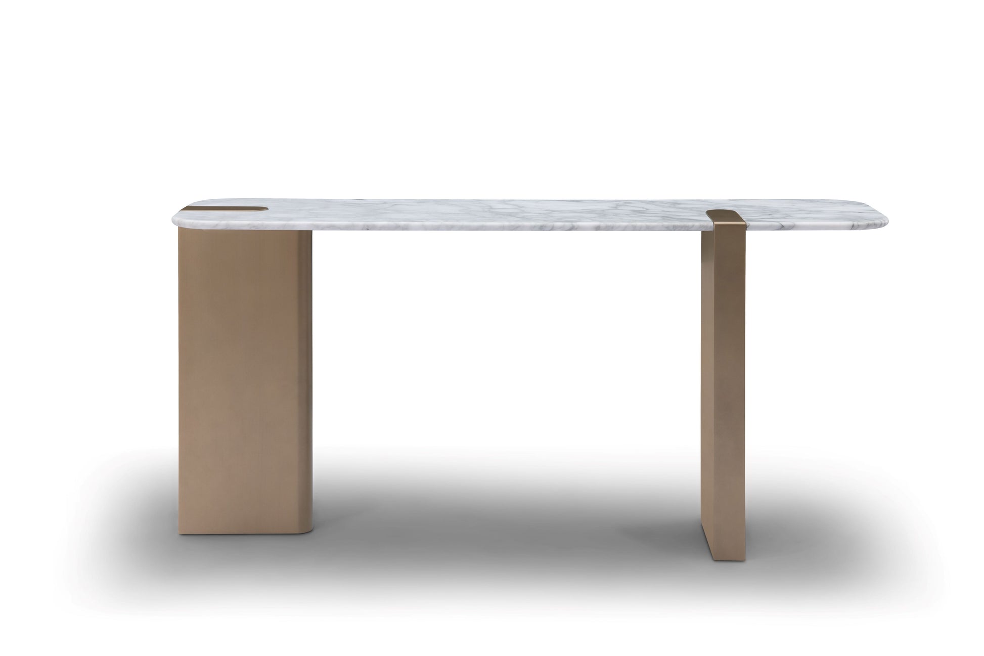 A seamless fusion of art and function, this exquisite designer server elevates any interior with its sculptural presence. The matte white tabletop offers a minimalist elegance, perfectly balanced by slender brass metallic legs that exude timeless sophistication. Measuring 1600 x 400 x 760 mm, this piece is ideal for refined dining spaces, entryways, or curated living areas. More than furniture, it’s a statement of taste.