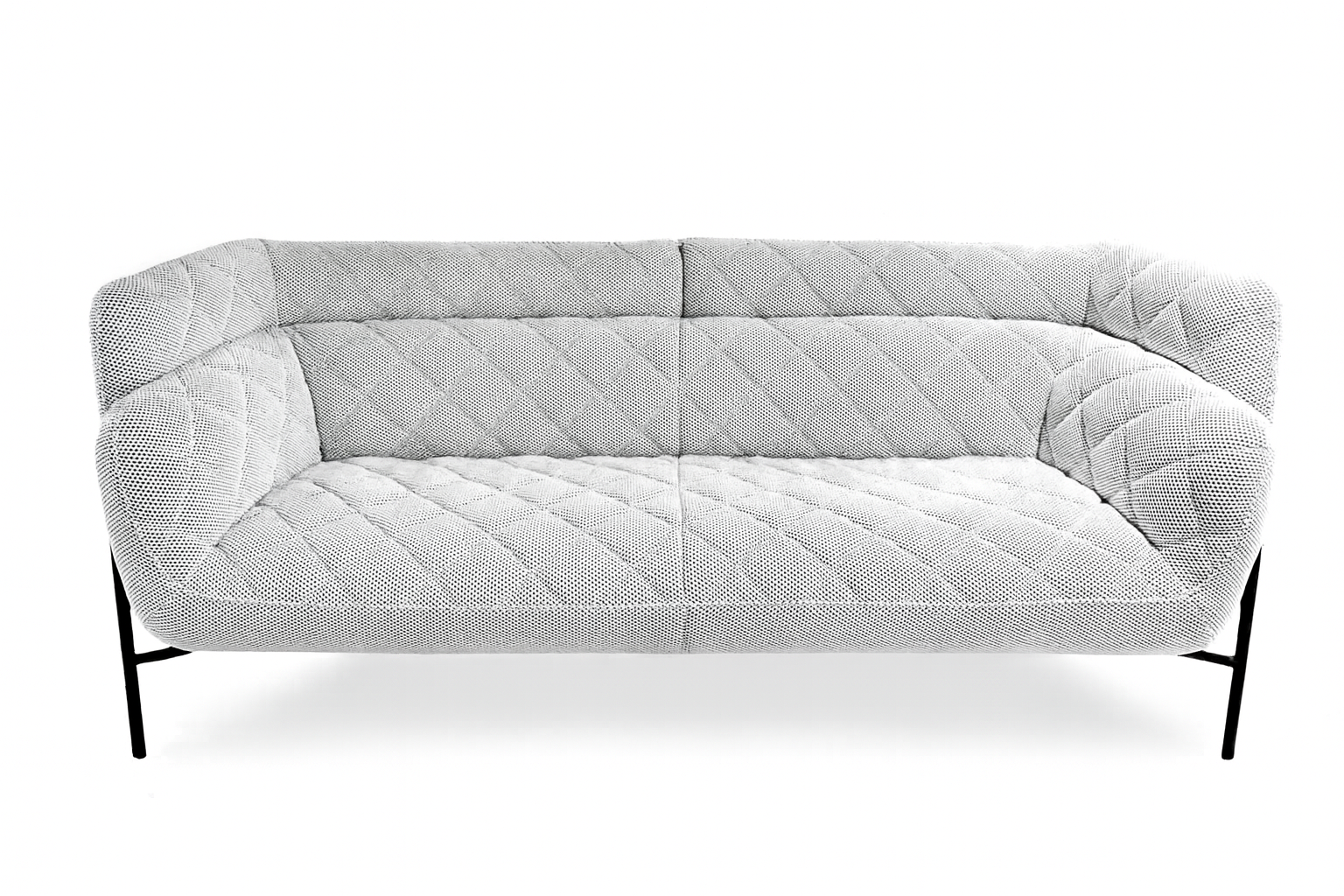The generously padded form, supported by minimalist black legs, offers both visual lightness and tactile comfort. Whether styled in a modern penthouse or a serene coastal home, Nancy becomes an instant focal point — a refined blend of artistry and luxury.