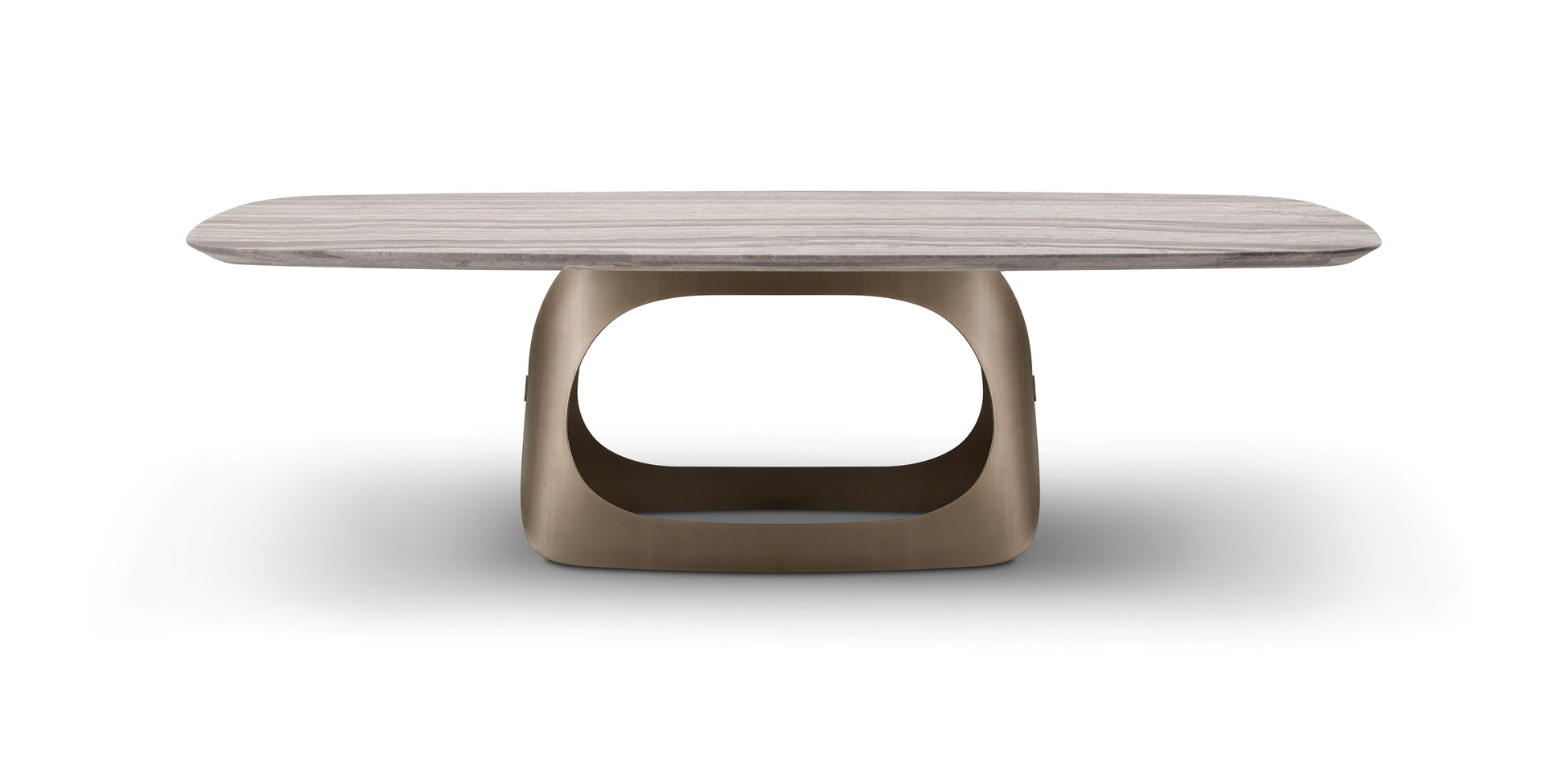 A commanding fusion of elegance and artistry, this designer dining table redefines modern sophistication. The tabletop, hewn from silver grey marble, offers a serene, polished surface with subtle veining that evokes timeless luxury.