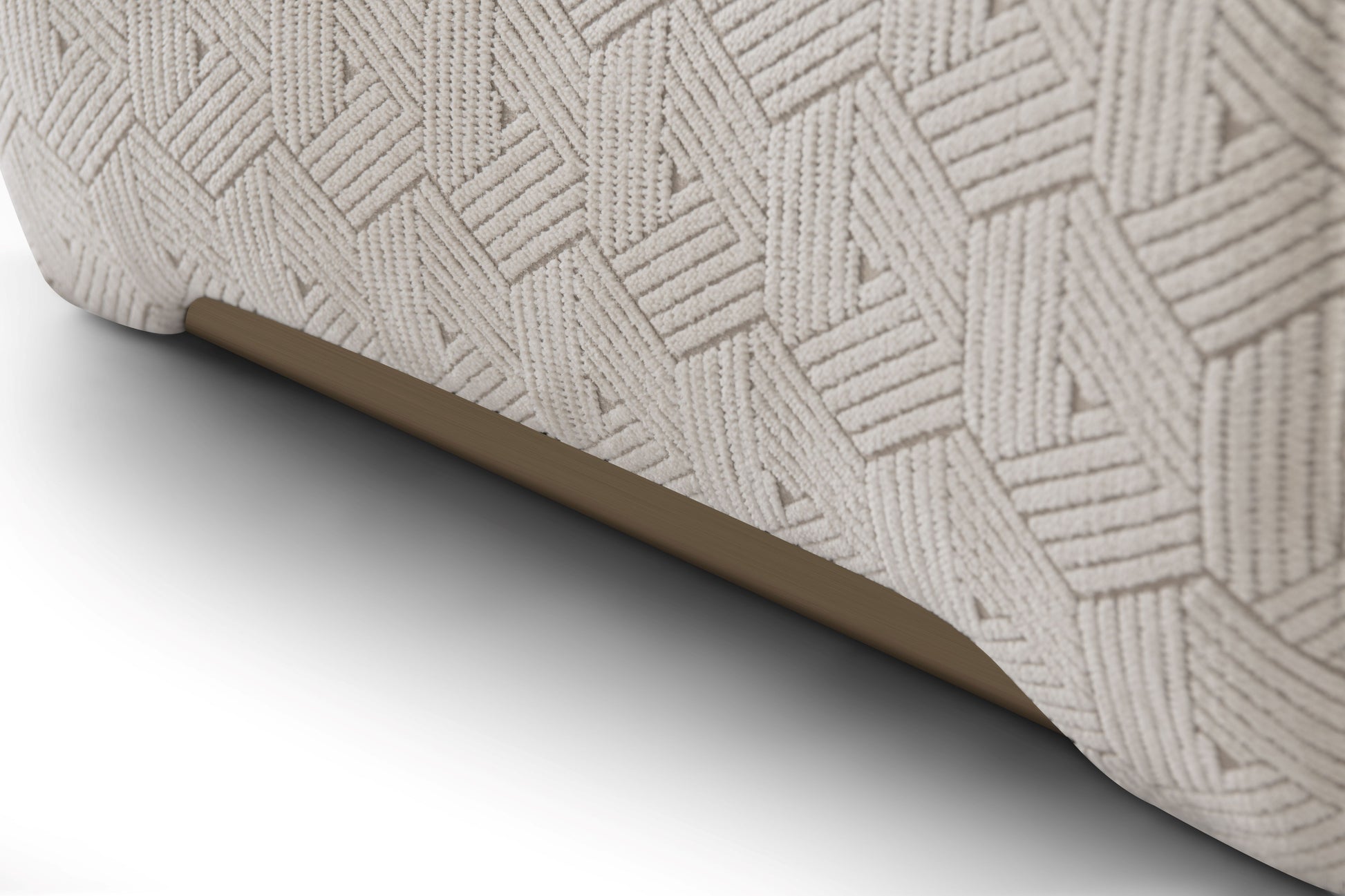 Upholstered in your choice of classic beige or bold zebra print, the Sassani’s fluid frame is wrapped in rich fabric, complemented by a matching waist pillow that offers both support and visual harmony. Its foundation is accented with brushed yellow copper stainless steel, adding a touch of refined luminosity to the overall design.