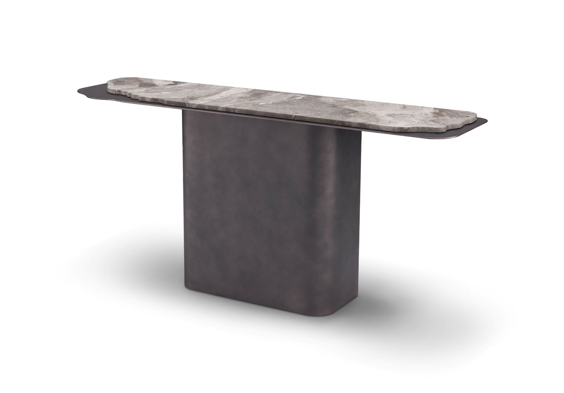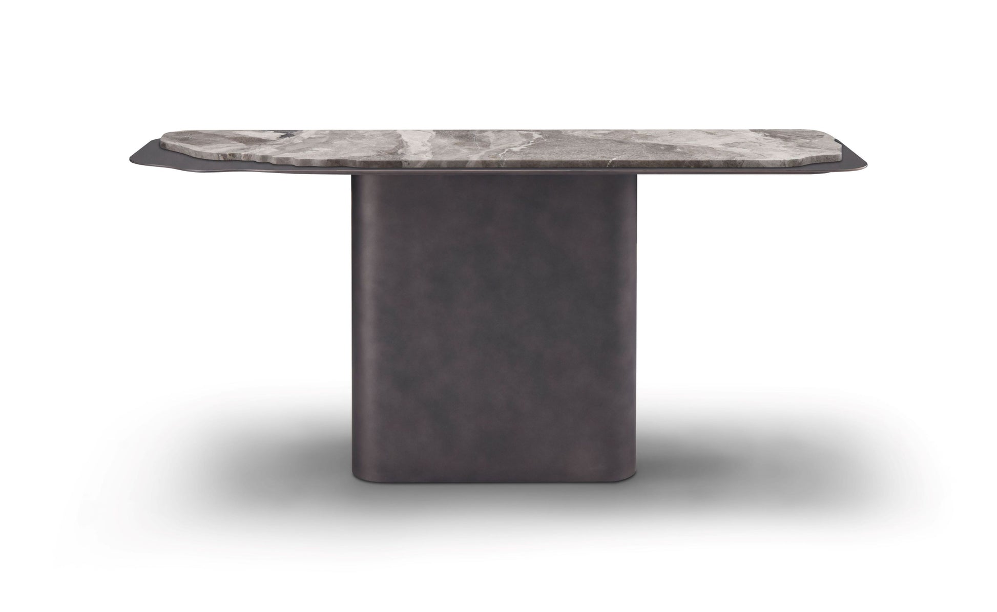 Sculptural and refined, this designer server is a statement of contemporary elegance. The tabletop, crafted from exquisite maple brown marble with a sophisticated leather-touch finish, offers both visual warmth and tactile richness. Anchored by a sleek grey metal base and accented with a matching decorative element, the design achieves a harmonious balance of strength and grace. Measuring 1600 x 420 x 760 mm, this piece transforms any space into a curated showcase of modern luxury.