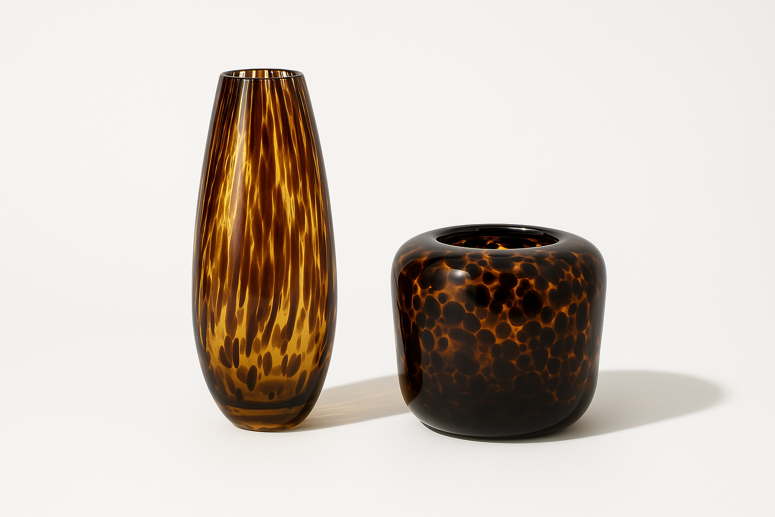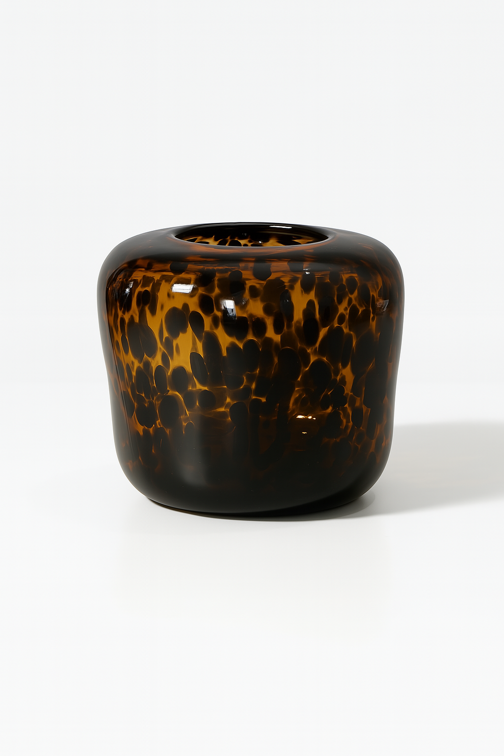 Elevate your interior with the timeless elegance of our Tortoise Glass Vase – a striking blend of art and design. Handcrafted from richly patterned glass, each piece features a deep amber and black tortoiseshell finish that exudes warmth, depth, and individuality. Whether styled alone or as a pair, these vases command attention as sculptural centerpieces in any luxury setting.