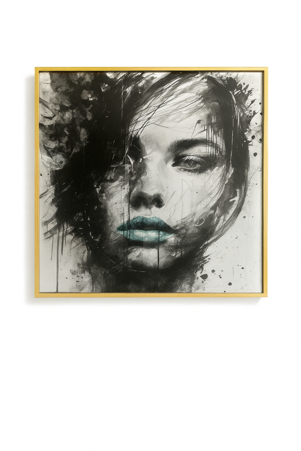 Presented in a sophisticated 900 x 900 mm format, the piece is elegantly finished with a handcrafted gold frame, adding a layer of luxury and refinement. Perfect for curating a modern interior, this artwork embodies the allure of high-end design—timeless, dramatic, and undeniably captivating.